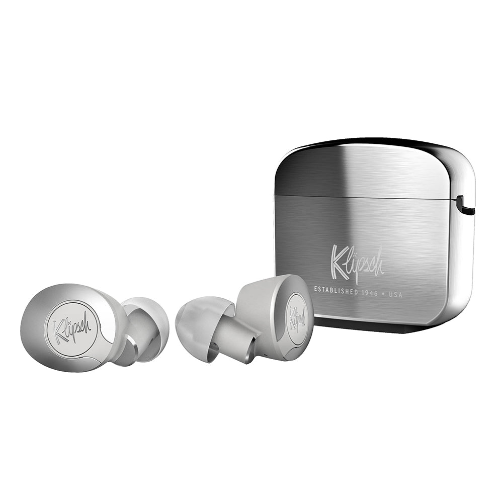 Sonido legendario Klipsch La misma ingeniería acústica avanzada y diseño industrial de nuestros legendarios altavoces de cine en casa proporcionan el rendimiento, la voz y el diseño para los auriculares de la serie T5 II. Están diseñados para un rendimiento puro y diseñados para ser los mejores auriculares más cómodos de la tierra y la encarnación del legendario sonido Klipsch. Almohadillas ovaladas patentadas: nuestros auriculares incluyen 6 pares de almohadillas de contorno suaves, ovaladas, de silicona, patentadas que están diseñadas para reducir la fatiga auditiva, proporcionar la máxima comodidad y un excelente sellado para aislamiento de ruido y graves superiores. Se ajustan mejor, se sienten mejor, y solo Klipsch. Controlador dinámico de alta claridad: diseñado para ofrecer un rendimiento potente desde el paquete más pequeño, nuestro controlador dinámico combina alta salida, sonido neutro y extensión de graves profundos. Duración de la batería + funda de carga: los auriculares proporcionan 8 horas de duración de la batería con una sola carga y hasta 24 horas adicionales con la funda de carga. La funda delgada de metal cepillado no solo carga tus auriculares, sino que los protege cuando no están en uso. También puedes esperar más de una hora de reproducción con una carga rápida de 15 minutos. La funda se carga a través de USB-C. Modo de transparencia: este modo está diseñado para permitir que el sonido del mundo exterior entre en tus oídos, por lo que sabes lo que está pasando a tu alrededor. Micrófonos de haz con cVc Cuatro micrófonos de formación de haz integrados con chat de voz claro mejora automáticamente la claridad de voz y reduce activamente el ruido ambiental para garantizar que tus llamadas sean altas y claras. Antena externa de aumento de señal: ofrece una conexión de alta calidad entre auriculares y tu dispositivo mientras minimiza la huella en tu oído. Alcance: hasta 32.8 ft Resistente al sudor y al agua: la calificación IP67 significa que estos auriculares resisten los elementos (resistente al polvo y al agua) Bluetooth 5: se conecta fácilmente a tu dispositivo para una conexión inalámbrica rápida y robusta. Incluye AAC, aptX. Compatible con iOS y Android. Listo para asistente digital: conecta al instante al asistente digital de tu elección con una sola pulsación. Características: * Puntas de oreja ovaladas patentadas para la máxima comodidad y un excelente sello para el aislamiento del ruido * Sonido legendario de Klipsch: detallado y dinámico * Sin cables, 4 micrófonos, asistente digital de su elección, batería de 8 horas, batería de 24 horas con estuche de carga y compatible con la aplicación Klipsch Connect Especificaciones: * ESTILO: Monitor intrauditivo (In-Ear) * DISEÑO DEL DRIVER: Micro altavoz dinámico de bobina móvil * DIÁMETRO DEL DRIVER: 5.0 mm * MIC / REMOTO: cVc® 8.0 Single-Mic * RESPUESTA FRECUENCIA: 10Hz-19kHz * AISLAMIENTO DE RUIDO: -22dB * CONEXIONES DE ENTRADA: Bluetooth BATERÍA: * 55 mAh (auricular) * 360 mAh (estuche de carga) ESPECIFICACIONES DE BLUETOOTH®: * Versión: Bluetooth 5.0 * Perfiles: A2DP 1.3, AVRCP 1.6, HSP 1.2, HFP 1.7 * Códecs A2DP: SBC, AAC®, aptX® * Alcance: hasta 10 m (33 pies) * CLASIFICACIÓN DE ENTRADA: 5V DC, 1.0A * ESTADO DE LA BATERÍA: iOS y Android Monitor de estado de la batería * COLORES: Blanco negro * DIMENSIONES (EMBALAJE): 6.8" x 4.4" x 1.9" / 173 x 112 x 48 mm PESO: * 96.9 g (estuche de carga) * 5.5 g (auricular)