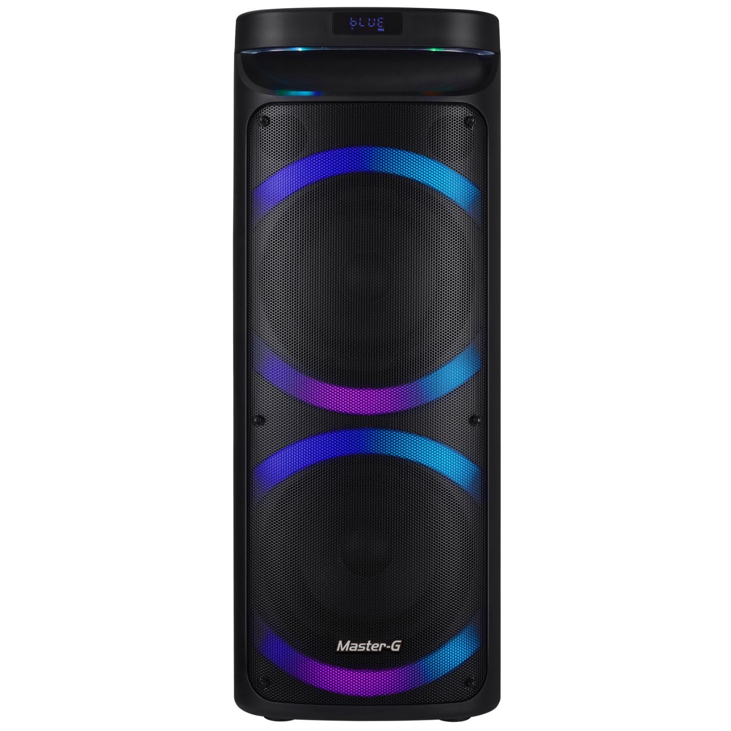 Karaoke Date el gusto de sentirte una estrella. Con los Parlantes Karaoke de Master-G canta todos esos éxitos junto a tus amigos. Con un sonido único y envolvente. Bluetooth Conecta todos tus dispositivos bluetooth a los Parlantes Karaoke Master-G. También con conexión USB y entrada de tarjetas SD para que reproduzcas tus temas favoritos cuando quieras y donde quieras. Conexiones Nuestro parlante cuenta con puerto USB, entrada auxiliar para que puedas ampliar tus posibilidades de escuchar tu música favorita de la manera más simple para ti. Estéreo inalámbrico (TWS) Con la función TWS (True Wireless Stereo) podrás conectar dos parlantes del mismo modelo en forma simultánea y escuchar como si fuera un solo equipo de música con el envolvente sonido estéreo. Especificaciones: - Pantalla display LED - Conectividad Bluetooth - Función True Wireless Stereo (TWS) - Reproductor de MP3 - Radio FM - Función Karaoke - Parlante con efecto de iluminación LED - Entrada auxiliar - 2 Entradas de micrófono - Puerto USB - Lector tarjeta Micro SD - Potencia máxima: 12.000W (60 W RMS) - Control de Volumen de micrófono - Woofer: 8" x2 - Ecualizador grafico de 5 bandas - Puerto de carga USB Tipo-C 5V - Batería recargable incorporada 11.1V/3000MAH - Incluye: Micrófono alámbrico, Control remoto Medidas: 30,0 x 76,2 x 32,0 cm Peso: 5KG