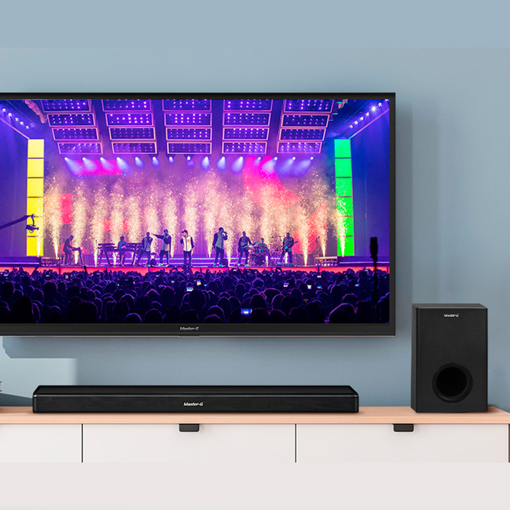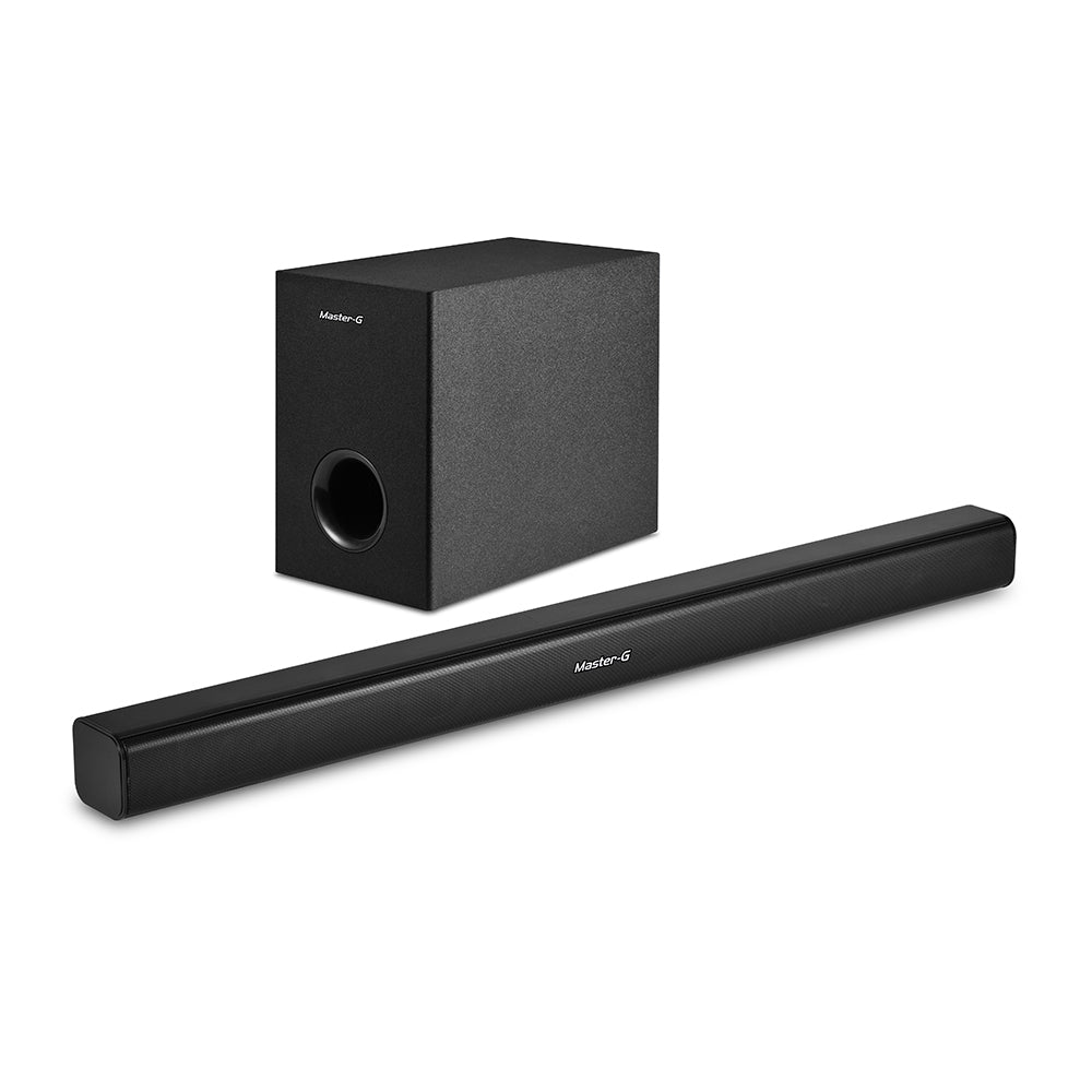 Reinventa el sonido Barra de sonido MGSB211 Sonido de alta calidad HIFI. Menos cables más música Conexión wireless Especificaciones: · Sonido de Alta Calidad · Conectividad Bluetooth · Distancia de transmisión 18mts aprox. · Potencia de salida 10W x2 · Subwoofer 15W · Entrada de audio Auxiliar · Entrada de audio Óptico digital y Coaxial · Salida Subwoofer · Control de bajos y agudos · Parlante con grilla metálica · Botones de encendido/modo, volumen y Pair Incluye: * Control remoto * Cable RCA * Adaptador 220V Medidas (Ancho x Alto x Prof.): Barra: : 81,5 x 6,0 x 6,0 cm/-- Subwoofer : 15,0 x 26,0 x 20,0 cm Peso: Soundbar 1,5kg Subwoofer 2,0kg