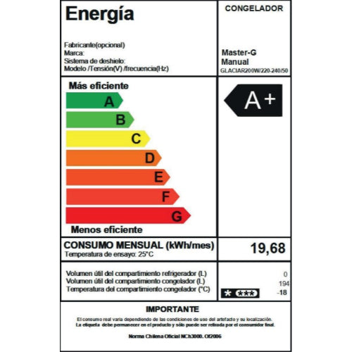 Freezer Horizontal 200L GLACIAR200W Blanco Master-G