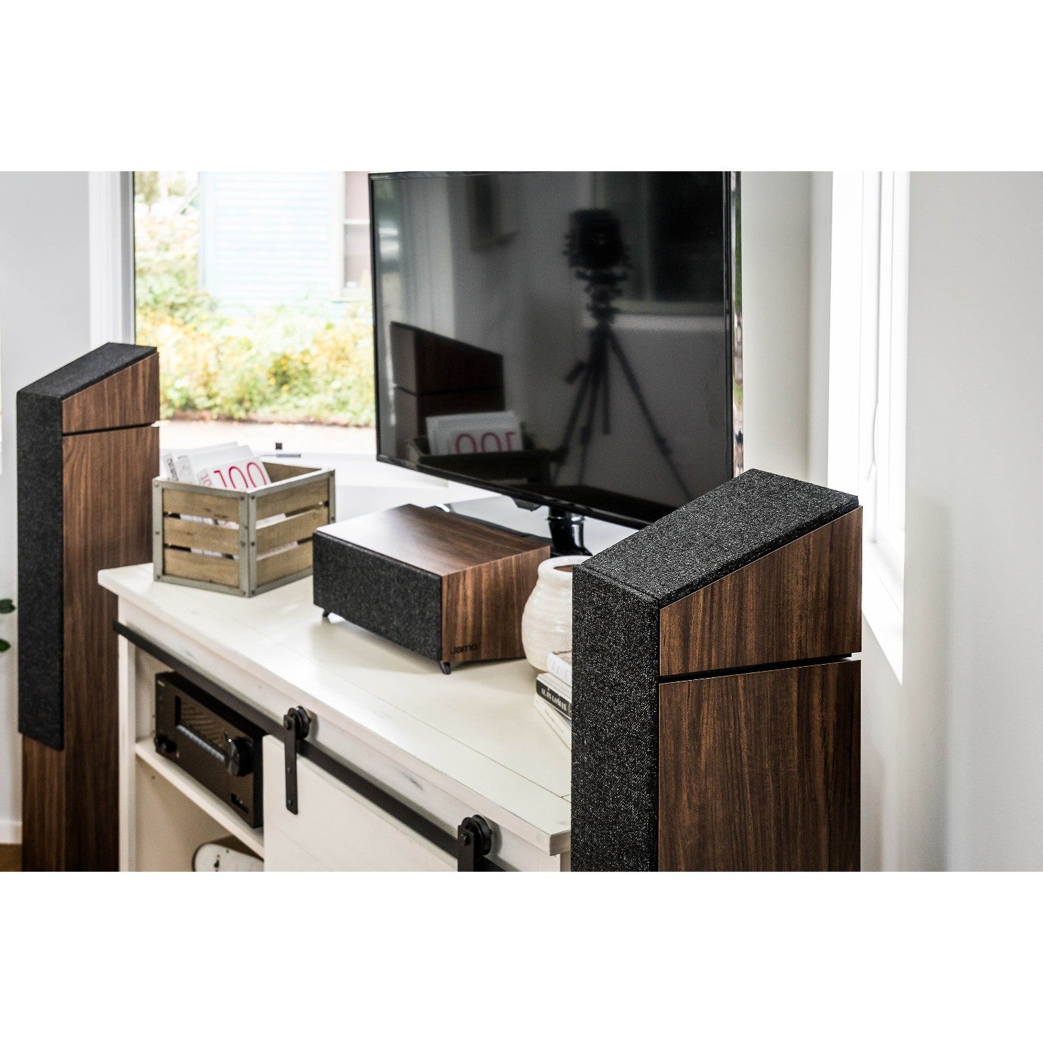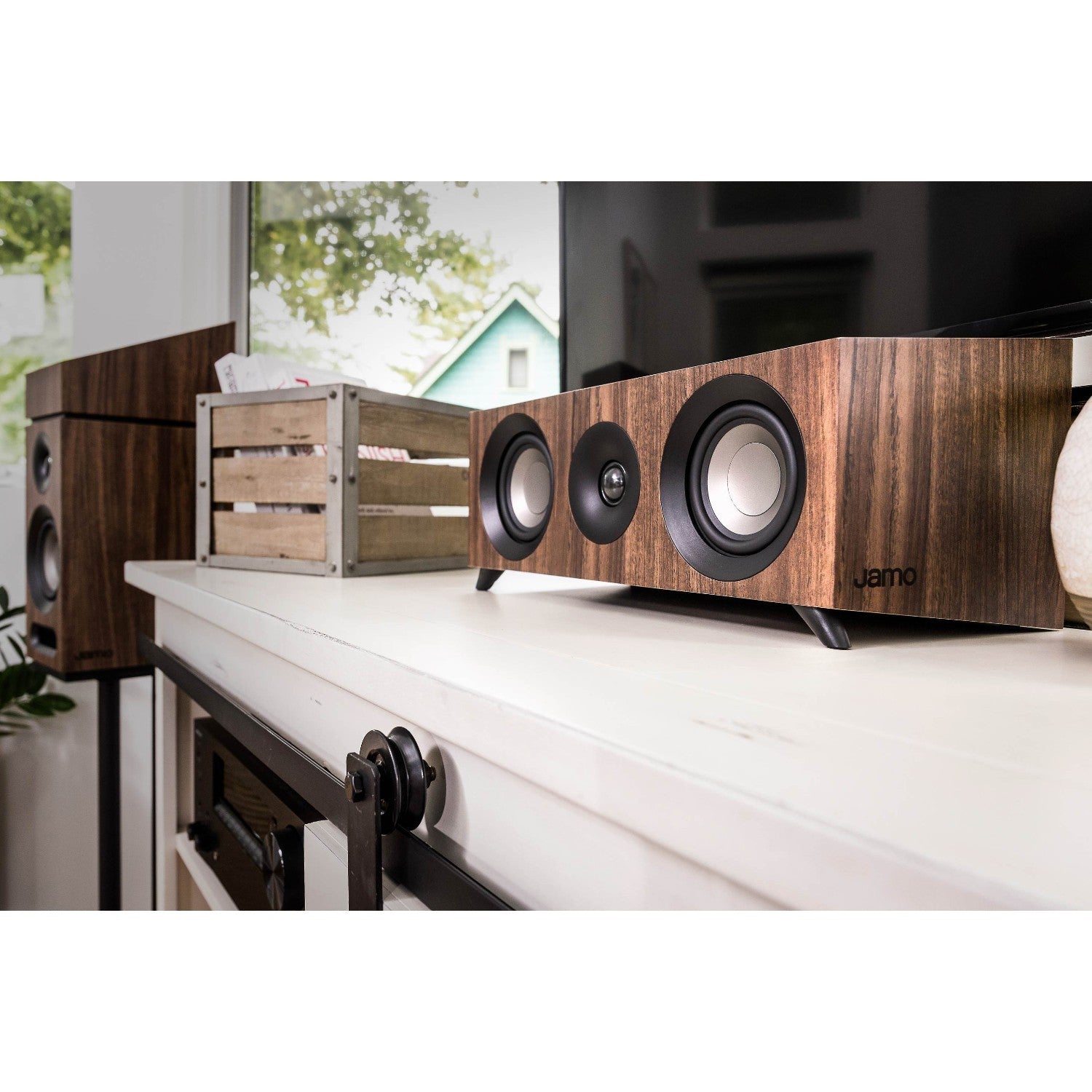 COMPLETAMENTE NUEVO, COMPLETAMENTE MODERNO La nueva serie Jamo Studio 8 se ha reinventado por completo para vivir sin problemas en entornos modernos y premium. El material contemporáneo y las opciones de acabado acentúan las líneas limpias y minimalistas de este diseño europeo, mientras que los diseños de gabinetes compactos son una solución ideal para entornos urbanos de todo el mundo. RENDIMIENTO PREMIUM El tweeter de cúpula blanda de 1 "proporciona frecuencias altas suaves y refinadas, con woofers duales de polifibra de 4" para bajos dinámicos equilibrados. El WaveGuide integrado enfoca el sonido de alta frecuencia para una reproducción dinámica y realista, mientras que el puerto de ranura de disparo posterior permite una mejor extensión de baja frecuencia. OPTIMUM DIALOGUE REPRODUCTION El S 81 CEN está diseñado para una reproducción de diálogo clara y equilibrada, lo que lo convierte en un canal central ideal para un sistema de sonido envolvente premium. WaveGuide enfoca las frecuencias en el rango vocal directamente al área de escucha para que el diálogo sea claro, articulado y realista, y nunca se pierda un detalle. MAGNETIC GRILLE Rejilla totalmente magnética, sin orificios de montaje ni pasadores de presión, para un diseño deflector frontal limpio y minimalista, mientras que la tela de rejilla de lino tejida grande crea interés visual con una textura pesada. Caracteristicas: FREQUENCY RESPONSE 71Hz - 26kHz SENSITIVITY 86dB (2.83V @ 1m) POWER HANDLING (CONT/PEAK) 60W / 120W NOMINAL IMPEDANCE 8 Ohm HIGH FREQUENCY DRIVER 25mm (1”) Soft Dome Tweeter LOW FREQUENCY DRIVER 2 x 102mm (4”) Polyfiber Woofers CROSSOVER 2kHz ENCLOSURE MATERIAL MDF ENCLOSURE TYPE Bass Reflex via Rear Firing Slot Port FINISHES Black, Walnut, White (Shown) DIMENSIONS (HxWxD) 184mm x 435mm x 220mm 7.25” x 17.13” x 8.66”